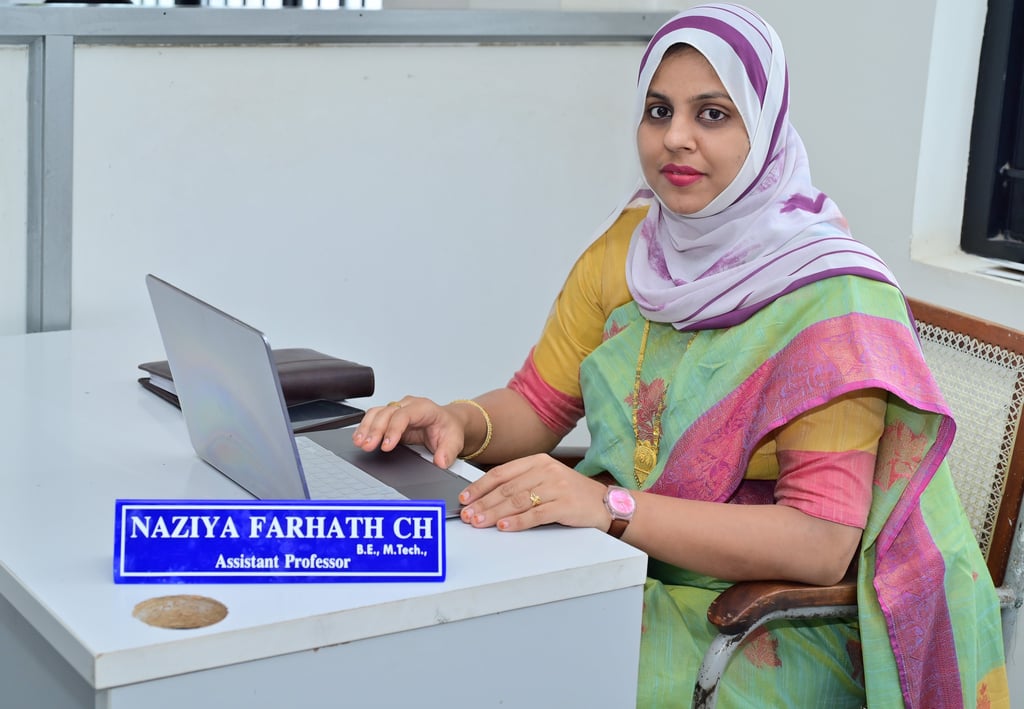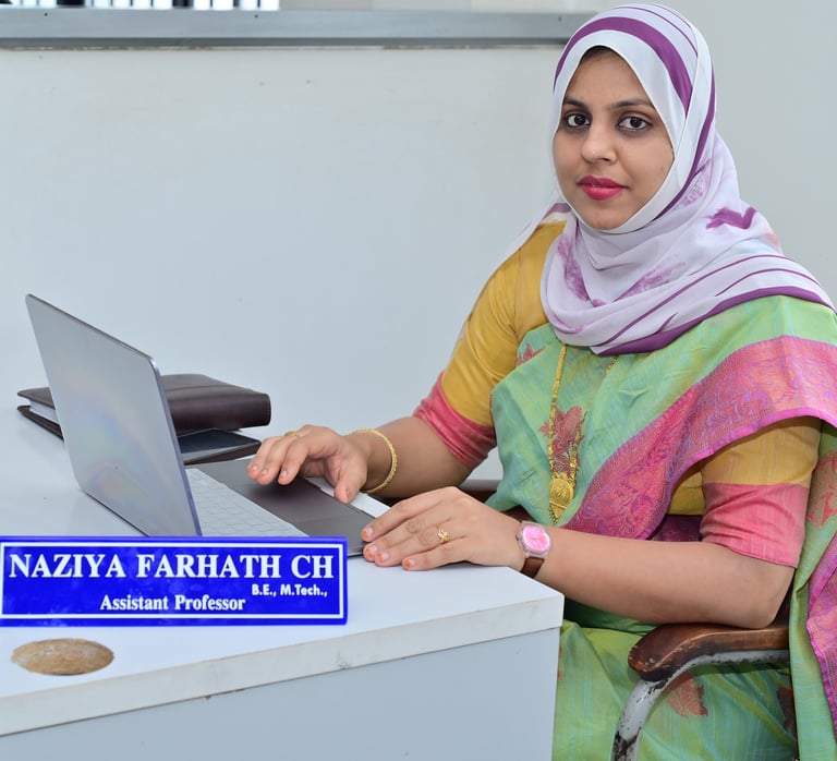 NaziyaFarhath C H is an Assistant Professor in the Department of Computer Science and Engineering at Ghousia Institute of Technology, Bangalore. She holds an M.Tech in Computer Science and Engineering from City Engineering College, Bangalore (VTU, Belgaum), graduating with first-class distinction in 2024. She earned her B.E. in Computer Science and Engineering from Karavali Institute of Technology, Mangalore, in 2010.