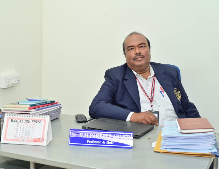Dr. H.M. Parveez Ahmed, earned his Bachelor's and Master's degrees from Mysore University and his Ph.D. from Bangalore University. He was a professor of chemistry at Ghousia College of Engineering, Ramanagaram, before his appointment at Ghousia Institute of Technology for Women, and put on 35 years of teaching experience. He joined this institution in the year 2023 and is working as a professor and head in the Department of Chemistry. He has produced two Ph.D. graduates and one M.Phil. candidate. He published about 15 Research papers in International journals and presented over 50 Technical papers at National and International conferences.He completed two research projects sanctioned by VGST and K-Tech District Innovation Hub, New Age Innovation Network, Govt. of Katakana.