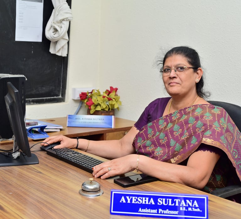 Ayesha Sultana is an accomplished academic professional currently serving as an Assistant Professor in the Department of Computer Science and Engineering at Ghousia Institute of Technology for Women.